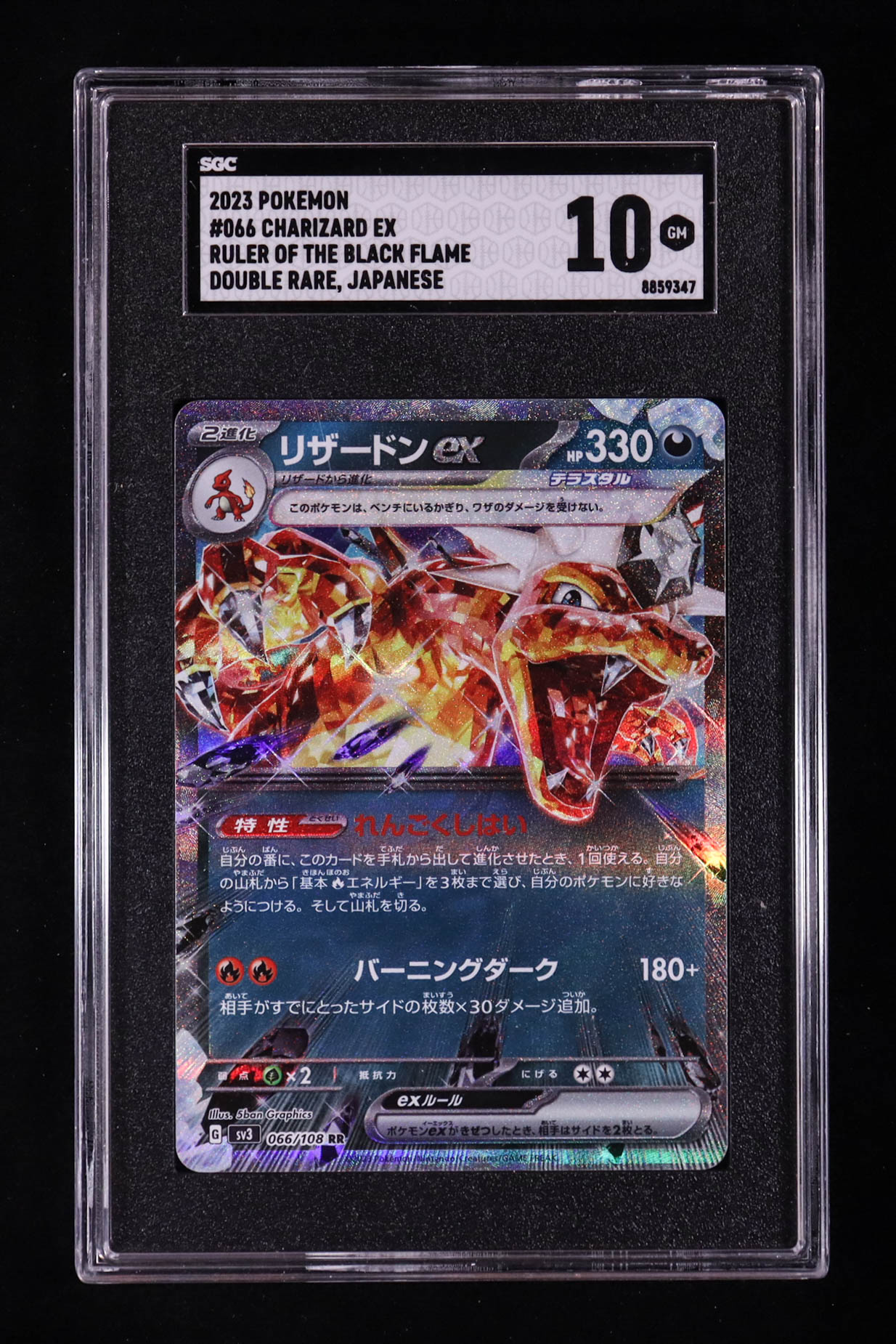 Charizard ex 2023 Pokemon Card Game Scarlet & Violet Ruler of the Black Flame Japanese #066 (SGC 10)