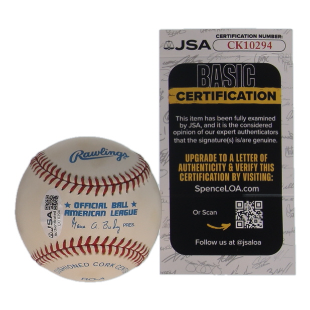 Rawlings Official American League Baseball. Hand-signed by Gaylord Perry (D. 2022, San Francisco Giants, HOF). Please note, the baseball is naturally toning and stained.
