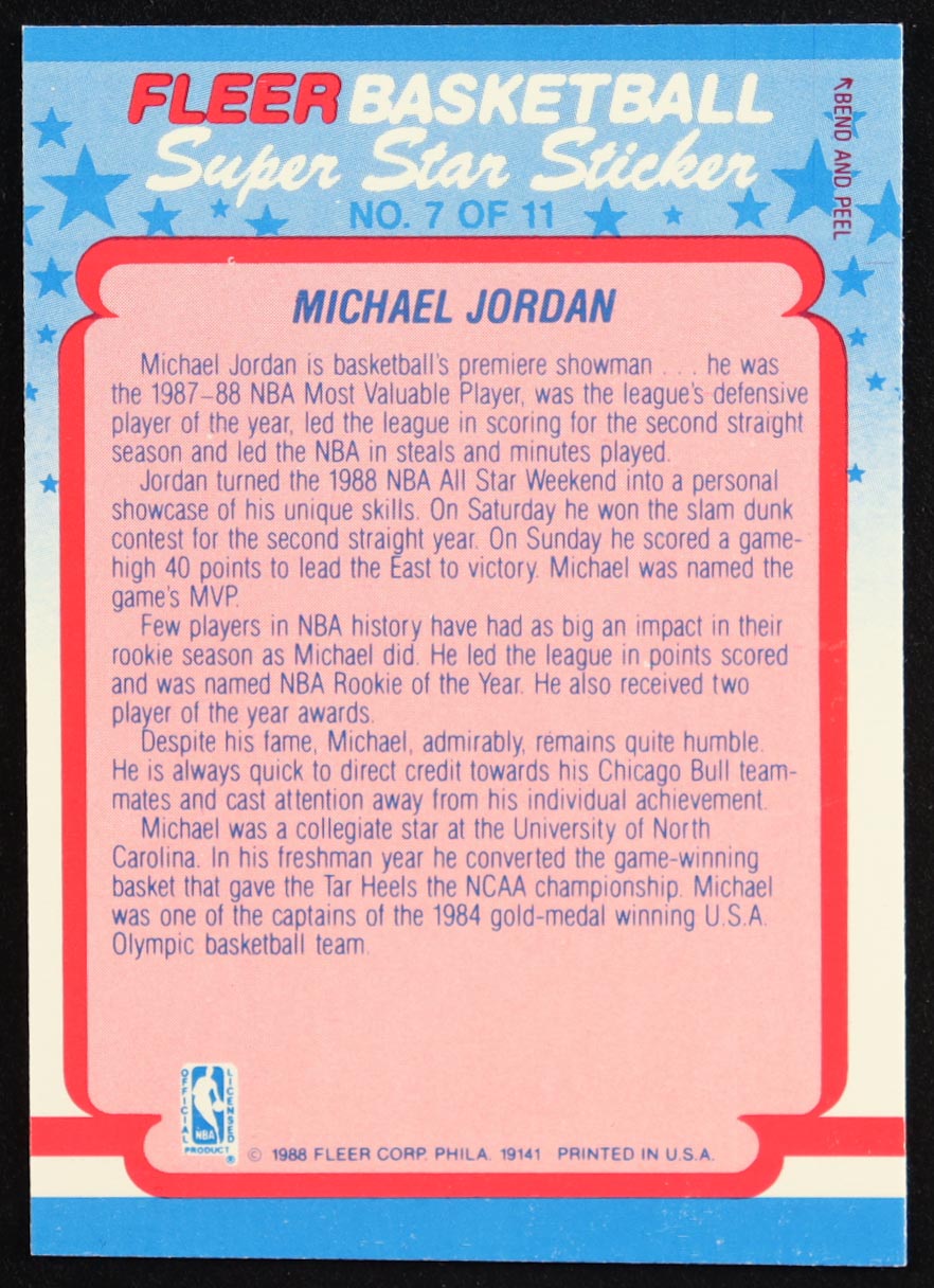 Michael Jordan 1988-89 Fleer Stickers #7