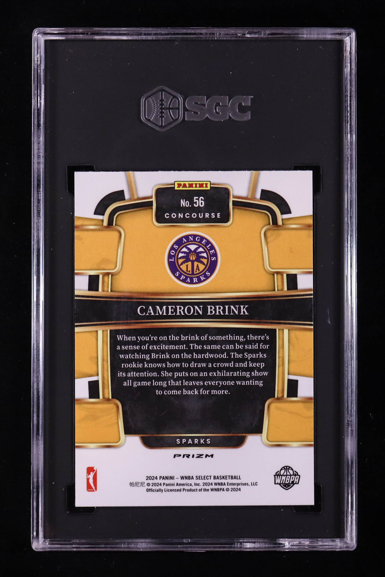 Card has been graded (SGC) 10. Please see photos for more details regarding the condition of the card (Los Angeles Sparks).