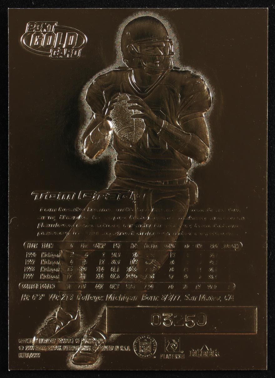 Tom Brady 2000 Fleer Ultra 23KT Gold Blue Metallic Signature Series RC