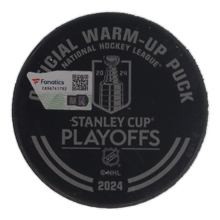 2024 Stanley Cup Official Warm-Up Hockey Puck. Hand-signed by Vincent Trocheck (New York Rangers) and was a practice-used, warm-up puck from Game Two of Round One during the 2024 Stanley Cup Playoffs vs. Washington Capitals.