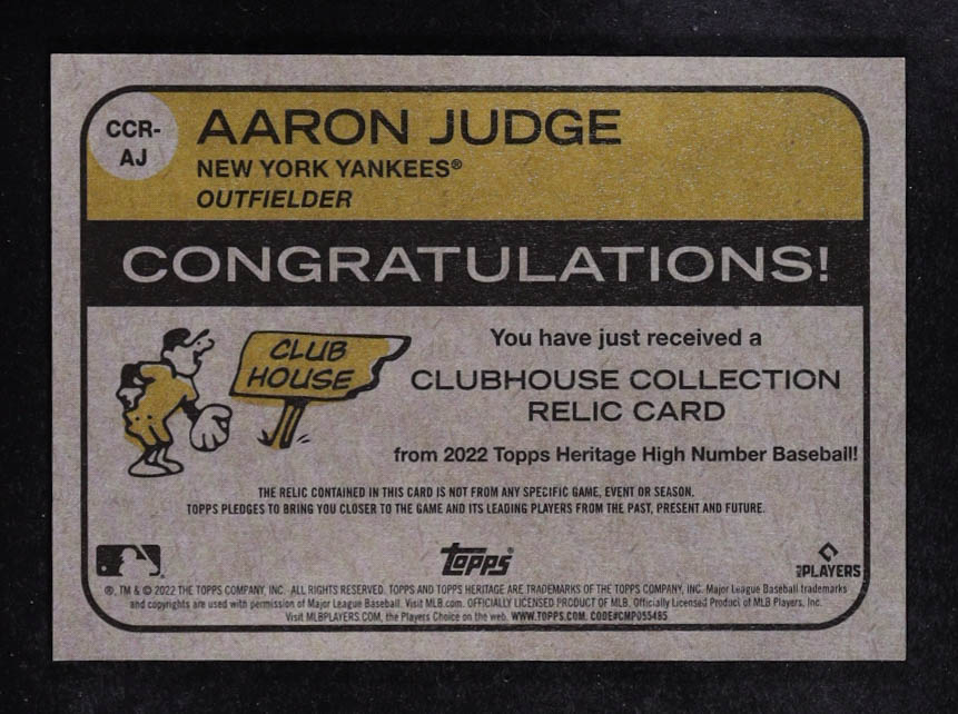 Aaron Judge 2022 Topps Heritage Clubhouse Collection Relics #CCRAJ HN