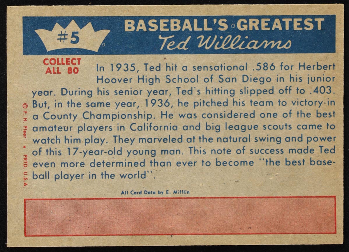 Ted Williams 1959 Fleer #5 / Ted's Fame Spreads