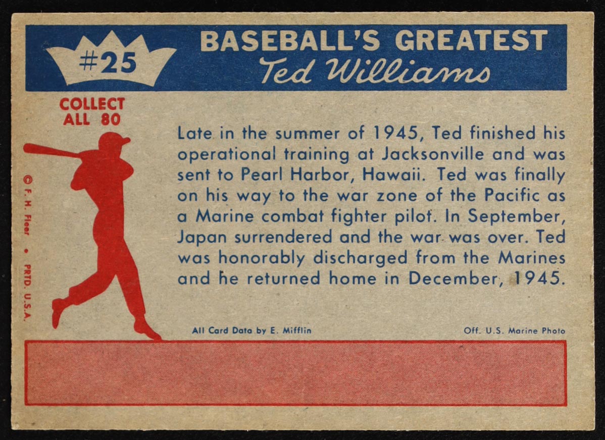 Ted Williams 1959 Fleer #25 / Ted is Discharged