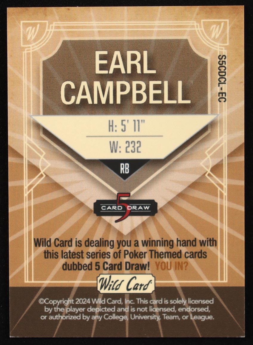 Earl Campbell 2024 Wild Card 5 Card Draw Blue Sapphire Holo Foil #S5CDCLEC #2/3
