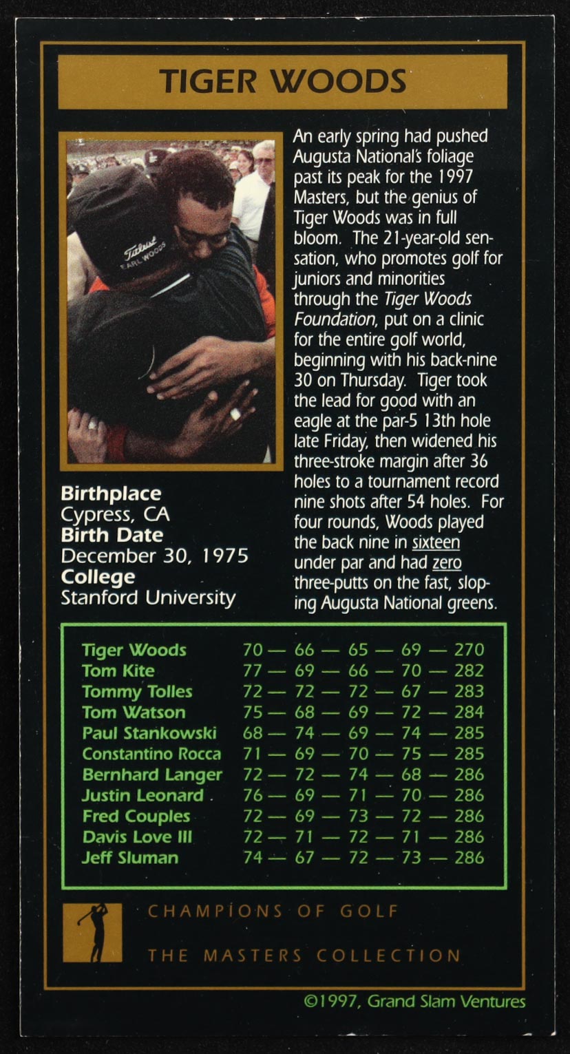 Tiger Woods 1997-98 Grand Slam Ventures Masters Collection #1997 XRC