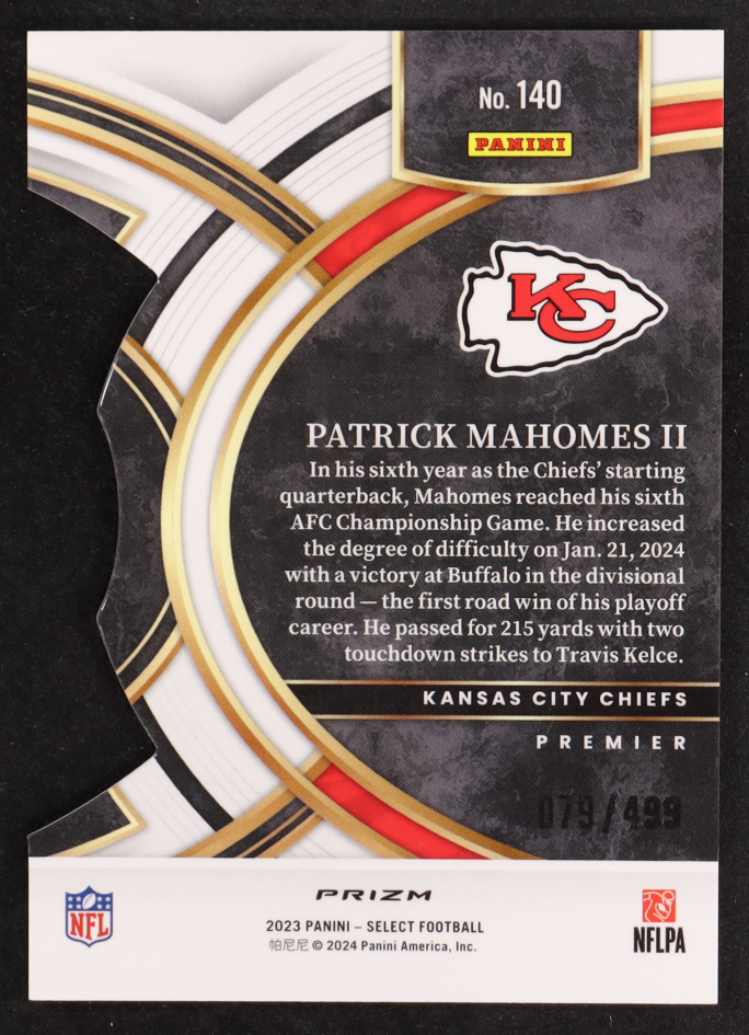 Patrick Mahomes II 2023 Select Prizm Neon Green Die Cut #140 #79/499