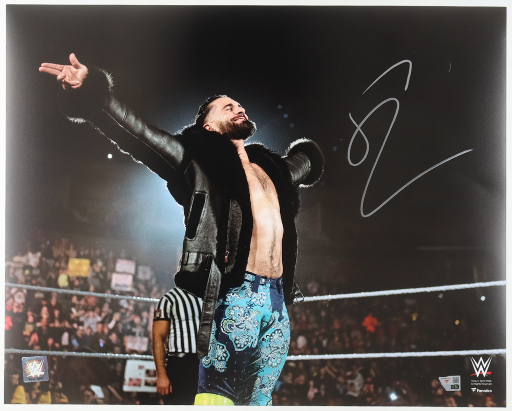 Photo measures 16" x 20" in size and has been hand-signed by Seth 'Freakin' Rollins.