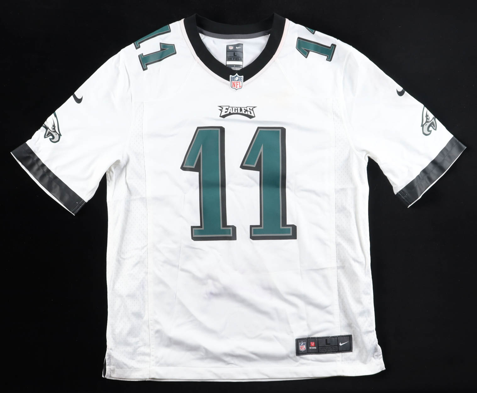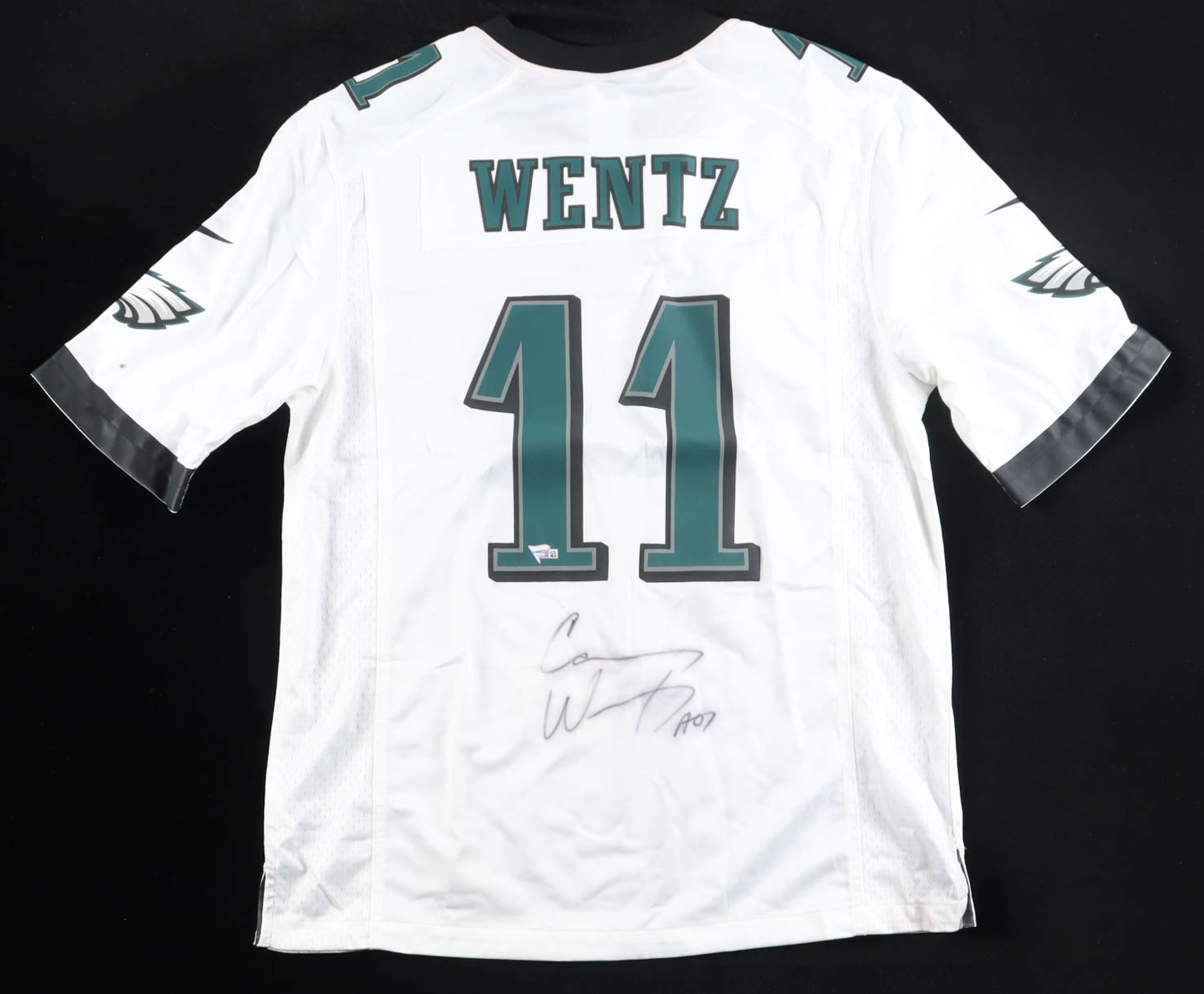 Nike authentic jersey with everything pressed on, size XL. Hand-signed by Carson Wentz (Philadelphia Eagles).