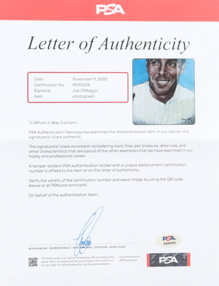 Joe DiMaggio Signed Yankees Custom Framed Doug West Art Print Display (PSA)
