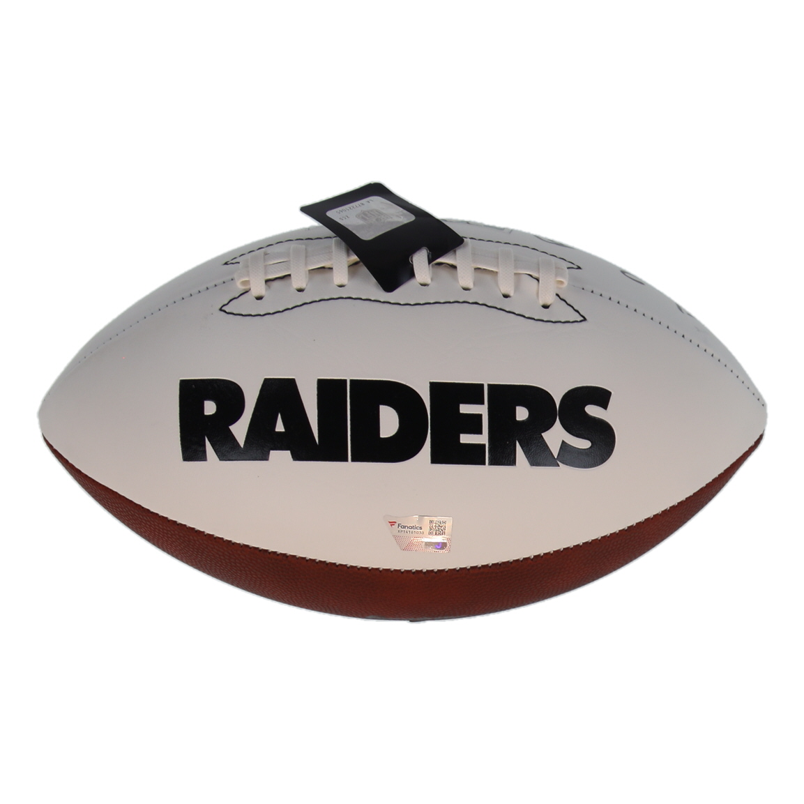 Franklin Oakland Raiders logo football. Hand-signed and inscribed by Tim Brown. Please note, there is an ink stain near the signature.