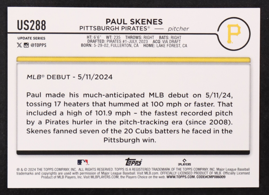 Paul Skenes 2024 Topps Update Royal Blue #US288 RC