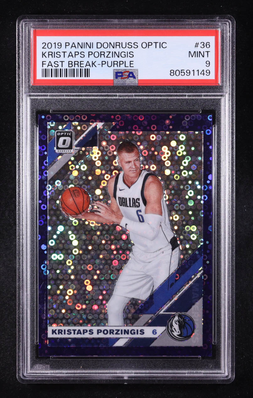 Kristaps Porzingis 2019-20 Donruss Optic Fast Break Purple #36 #06/95 (PSA 9)