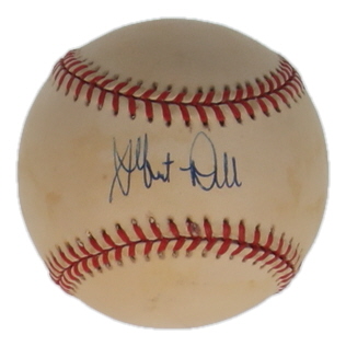 Rawlings Official American League baseball. Hand-signed by Albert Belle (Cleveland Indians). Please note, the baseball is naturally toned and stained.