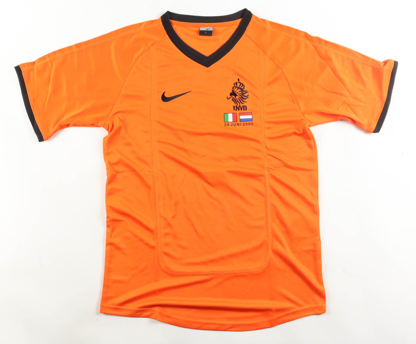 Nike authentic jersey with everything pressed and sewn on, size L. Hand-signed by Patrick Kluivert (Holland National Team).