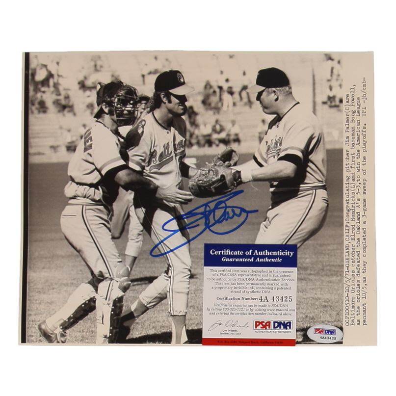 Photo measures 8" x 10" in size. Hand-signed by Jim Palmer (Baltimore Orioles, HOF).