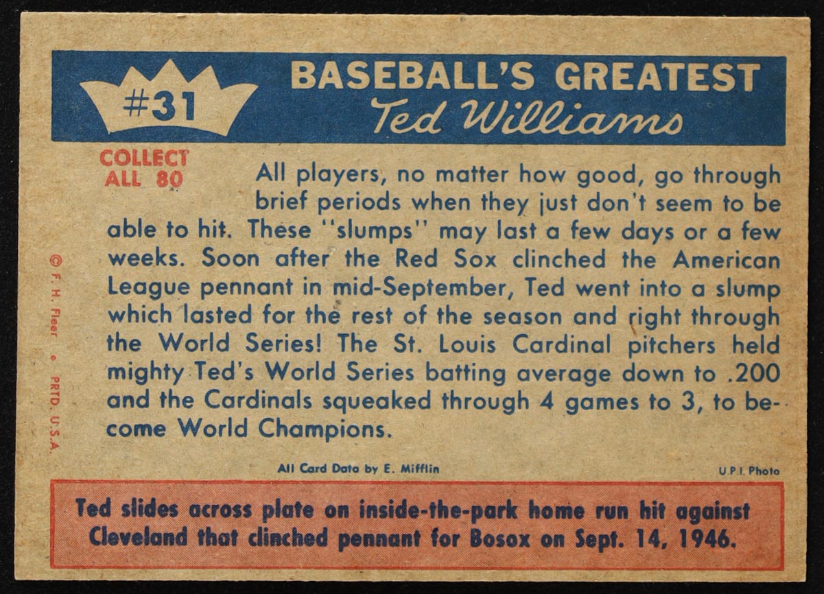 Ted Williams 1959 Fleer Ted Williams #31 / Sox Lose The Series