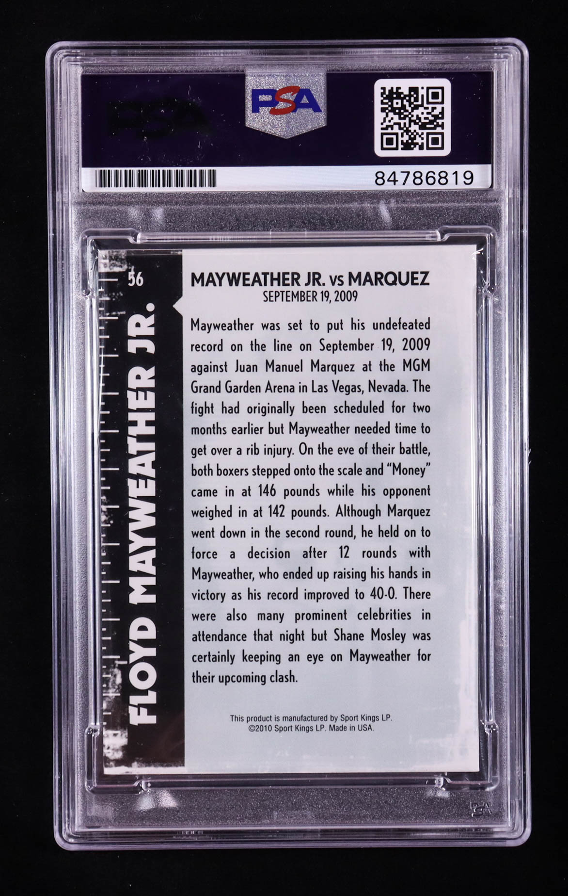 Floyd Mayweather Jr. Signed 2010 Ringside Boxing Round One #56 (PSA | Autograph Graded PSA 10)