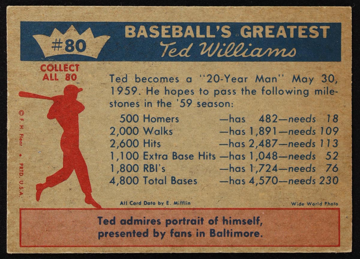 Ted Williams 1959 Fleer Ted Williams #80 Ted's Goals For 1959
