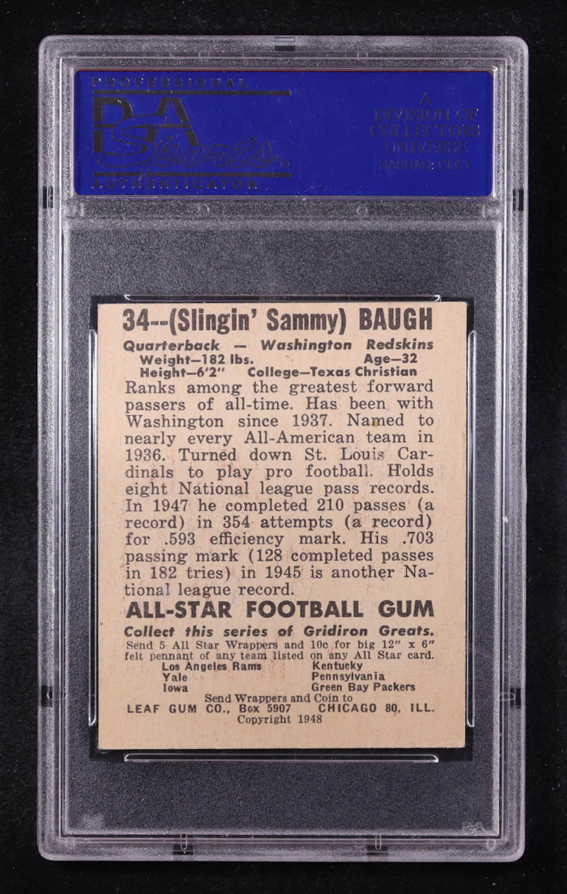 Sammy Baugh 1948 Leaf #34A MJ RC (PSA 7) (MC)