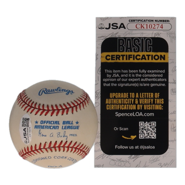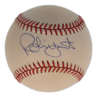 Rawlings Official American League Baseball. Hand-signed by Robin Yount (Milwaukee Brewers, HOF). Please note, the ball is naturally toned.
