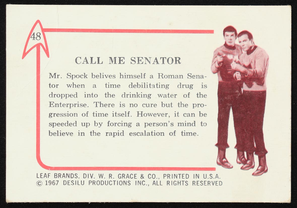 Call Me Senator 1967 Leaf Star Trek #48 Spock
