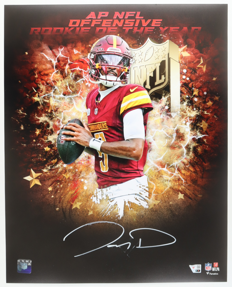 Photo measures 16" x 20" in size and has been hand-signed by Jayden Daniels (Washington Commanders).