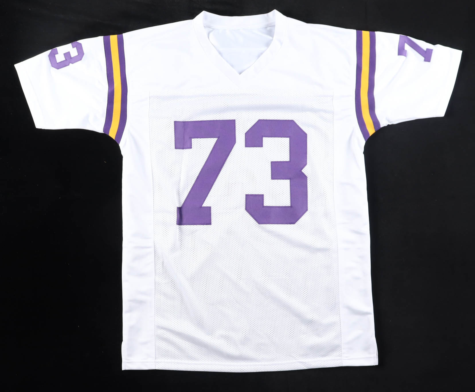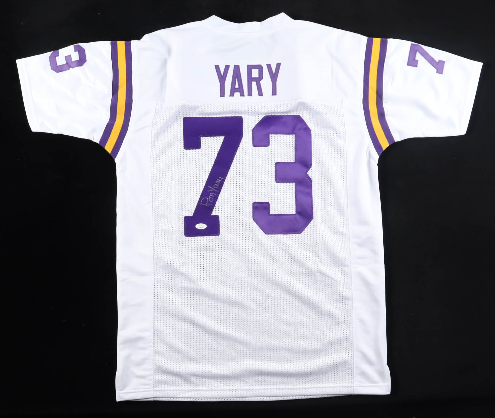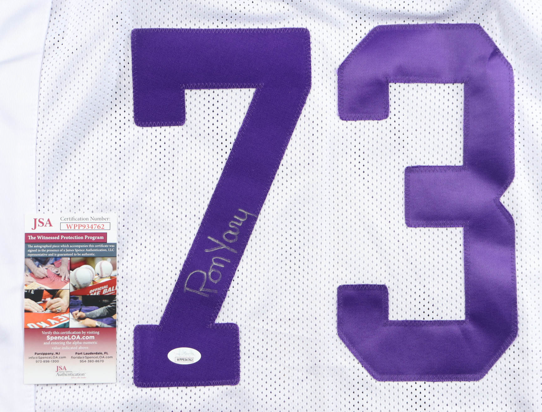 Custom jersey with everything sewn on, size XL. Hand-signed by Ron Yary.