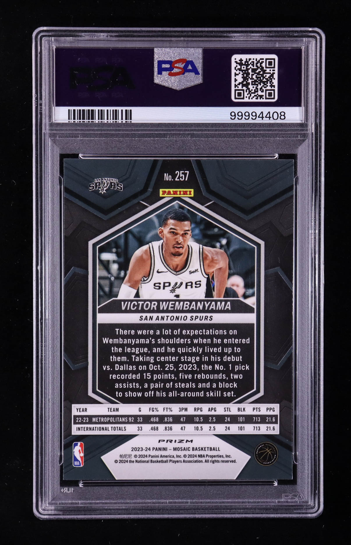 Victor Wembanyama 2023-24 Panini Mosaic Reactive Blue NBA Debut #257 (PSA 10)