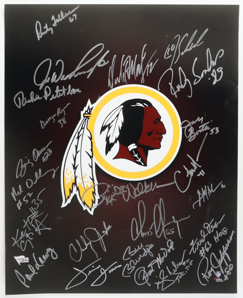 Photo measures 16" x 20" in size and has been team-signed by (25) with Bill Brundige, Mike Nelms, Roy Jefferson, Charles Mann, Charley Taylor, Chris Hanburger, Dexter Manley, Jeff Bostic, Ricky Sanders, Clinton Portis, George Rodgers, Jay Schroeder, Joe Washington, Neal Olkewicz, Rusty Tillman, Pat Fischer, Brian Mitchell, Richie Petitbon, Fred Dean, Jimmie Jones, Keith Griffin, Paul Laaveg, Ron McDole, Brig Owens and Rick Walker! Refer to photo regarding the condition of the item.