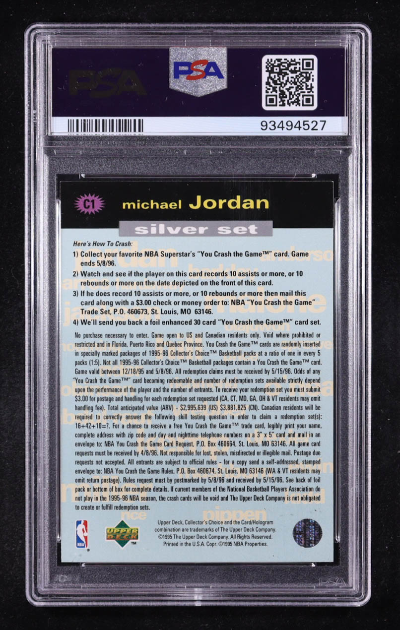 Michael Jordan 1995-96 Collector's Choice Crash the Game Assists/Rebounds Silver #C1 (PSA 9)
