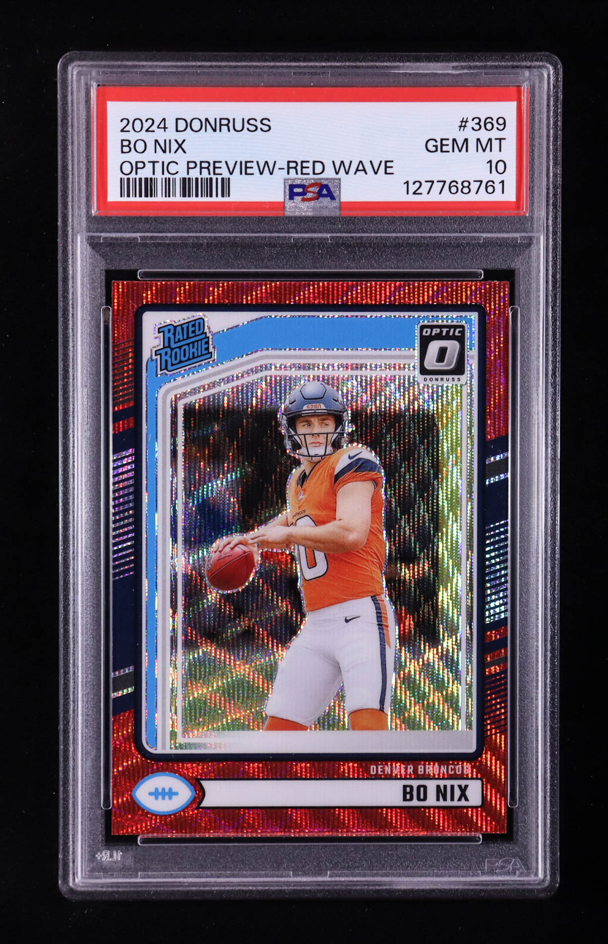 Bo Nix 2024 Panini Donruss Optic Preview Red Wave RR #369 RC (PSA 10)