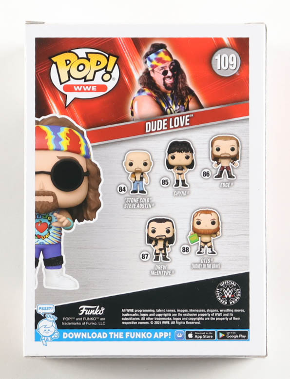 Mick Foley Signed "WWE" #109 Dude Love Funko Pop! Vinyl Figure Inscribed "Owwww!" (Authentic Ink)