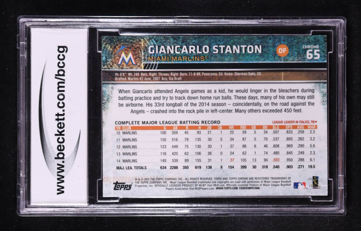 Giancarlo Stanton 2015 Topps Chrome Pink Refractors #65 (BCCG 10)