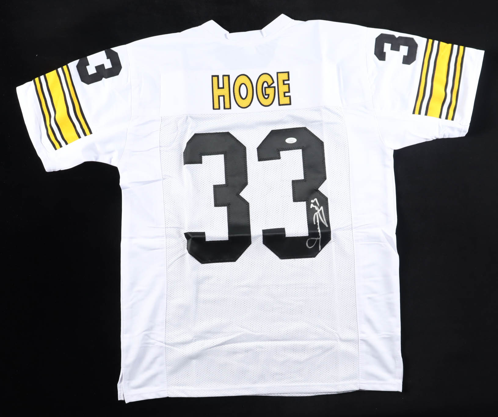Custom jersey with everything sewn on, size XL. Hand-signed by Merril Hoge.