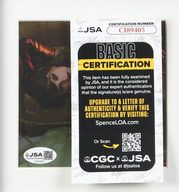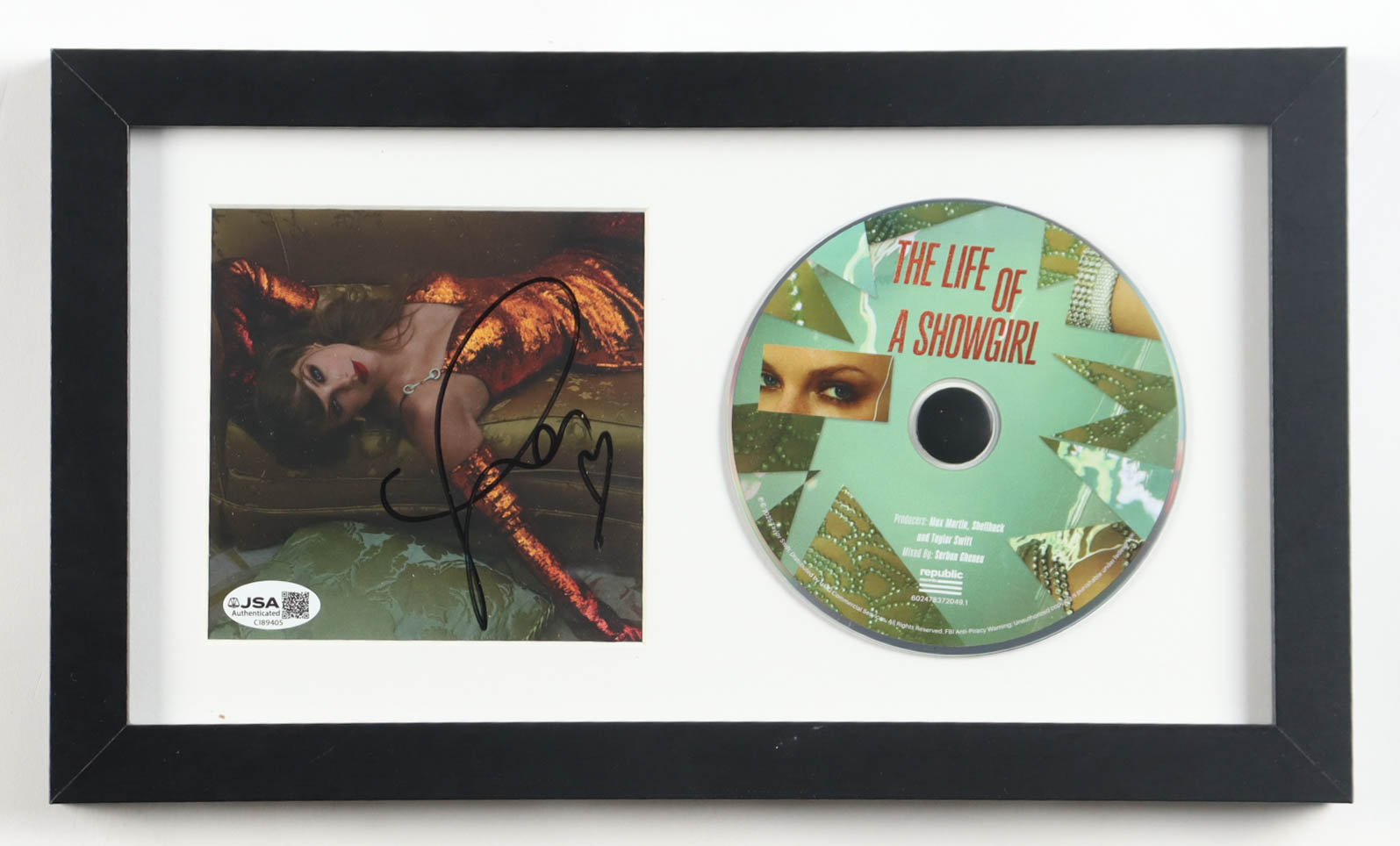 Custom frame measures approximately 8" x 13.5" in size. Features a "The Life of a Showgirl" CD insert that has been hand-signed by Taylor Swift and includes the disc as shown.