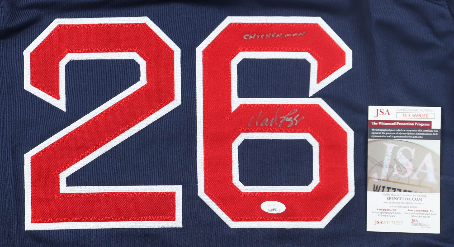 Wade Boggs Signed Jersey Inscribed "Chicken Man" (JSA)