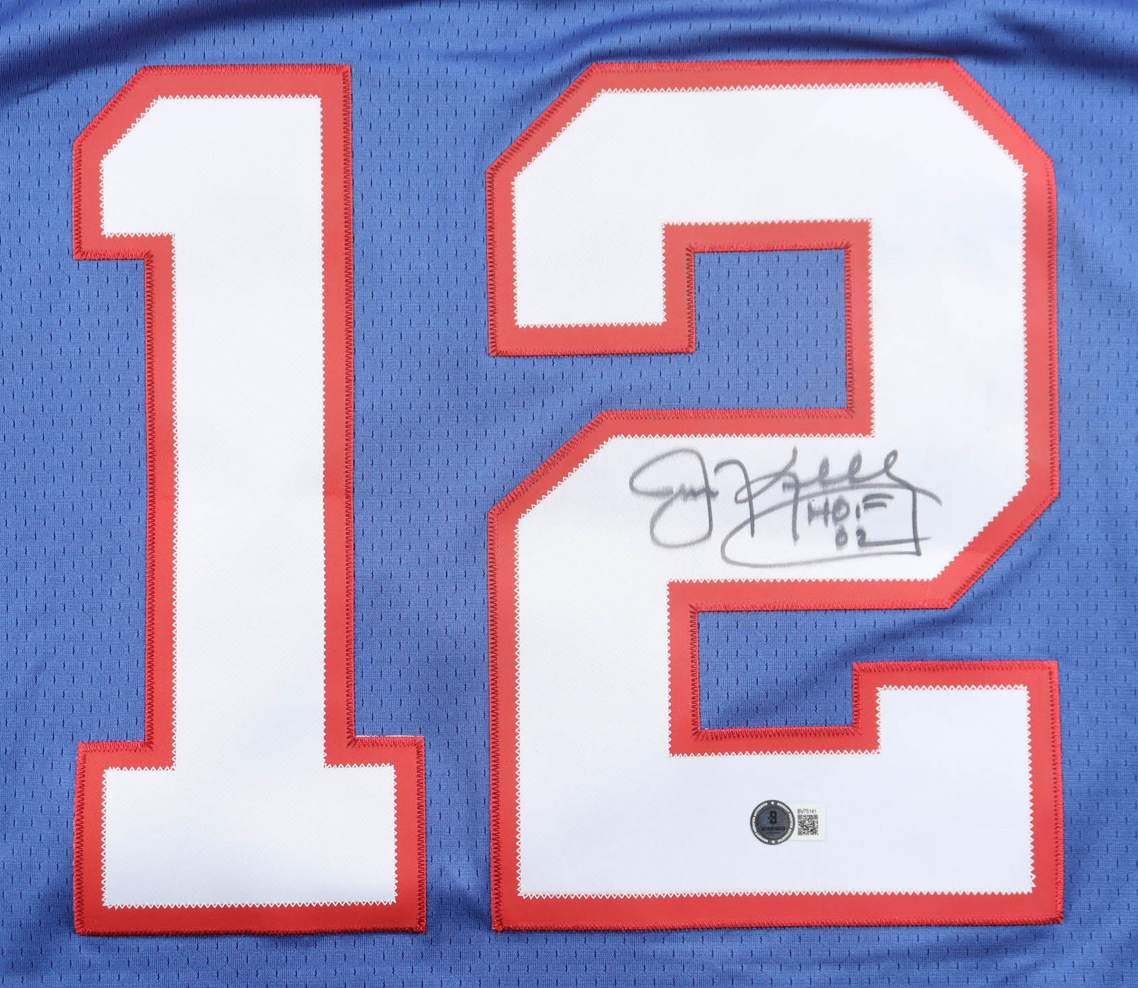 Jim Kelly Signed Bills Mitchell & Ness Authentic Jersey Inscribed "HOF 02" (Beckett)