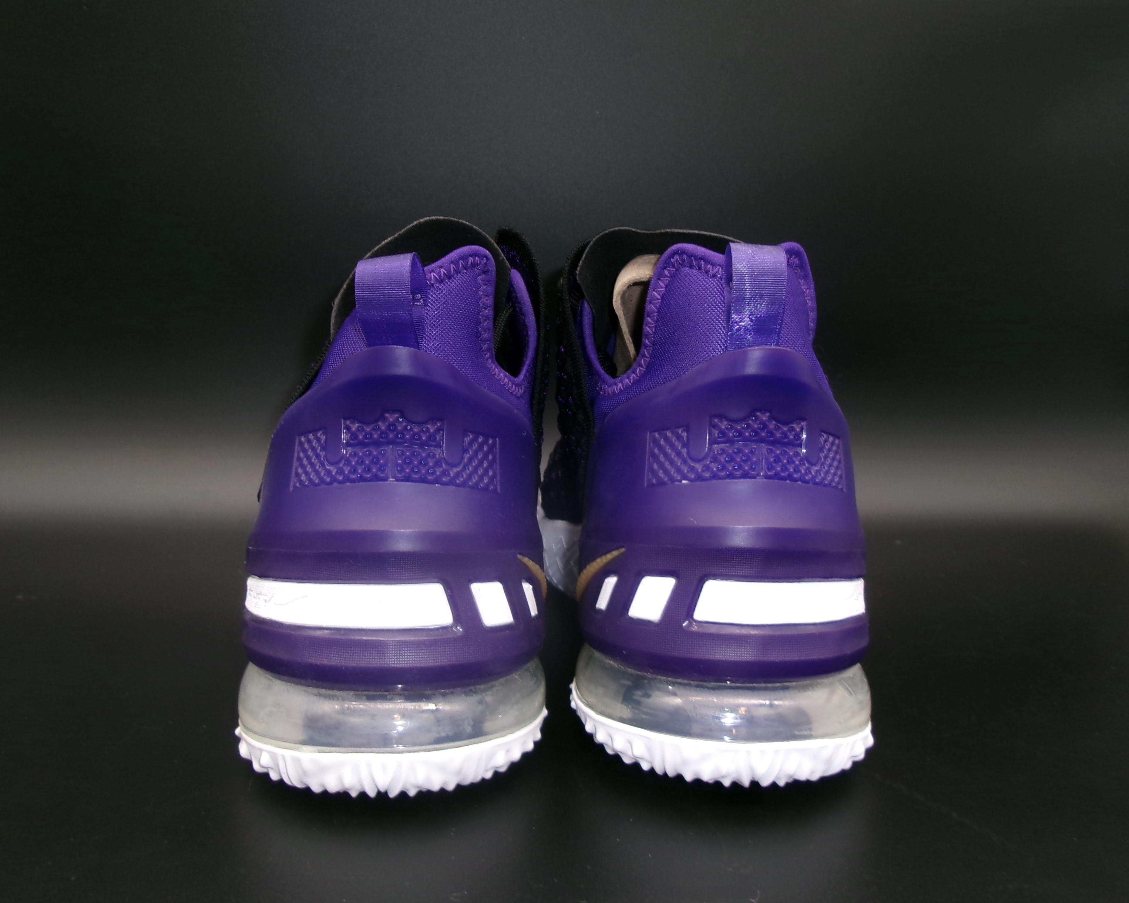 The Nike LeBron 18 'Lakers' updates LeBron James' signature shoe with a familiar palette inspired by the third team that the athlete has led to an NBA championship. U.S. Men's 11 / Women's 12.5 Whether a fan or a collector, these stunning black, gold, and purple sneakers are sure to turn heads!