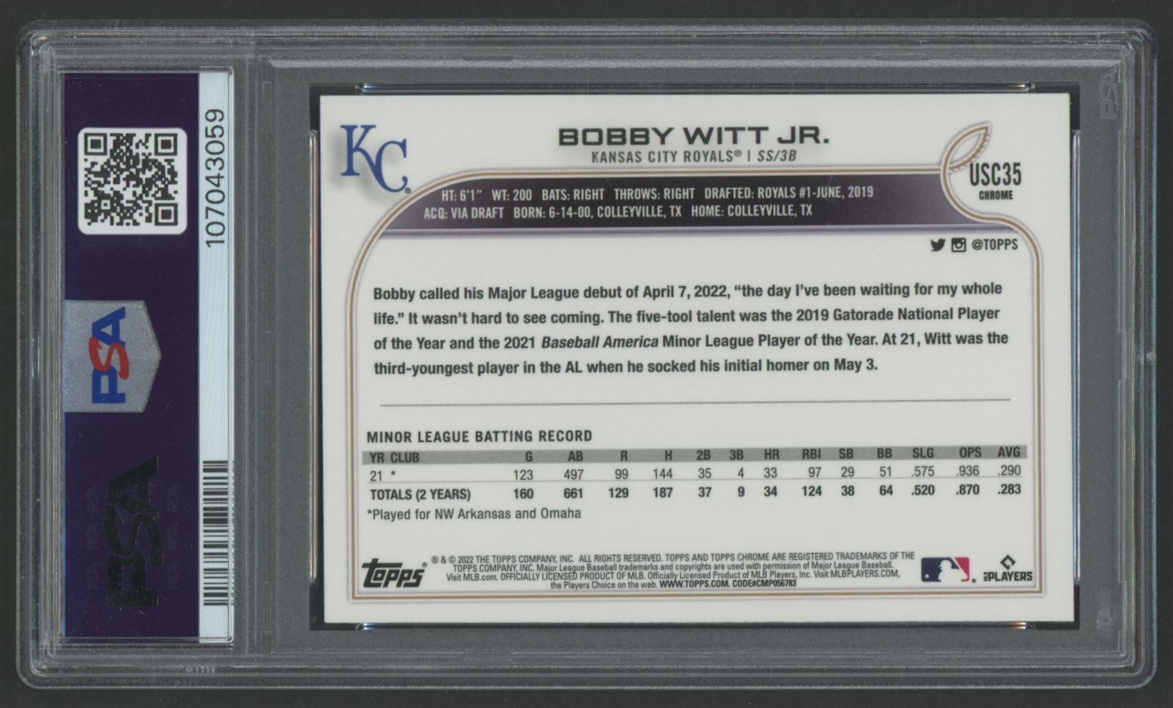Bobby Witt Jr. 2022 Topps Chrome Update #USC35 (PSA 8)