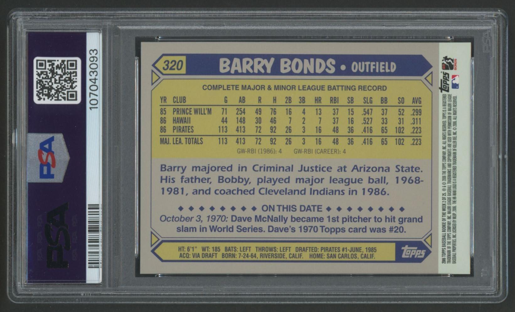 Barry Bonds 2006 Topps Rookie of the Week #2 (PSA 9)