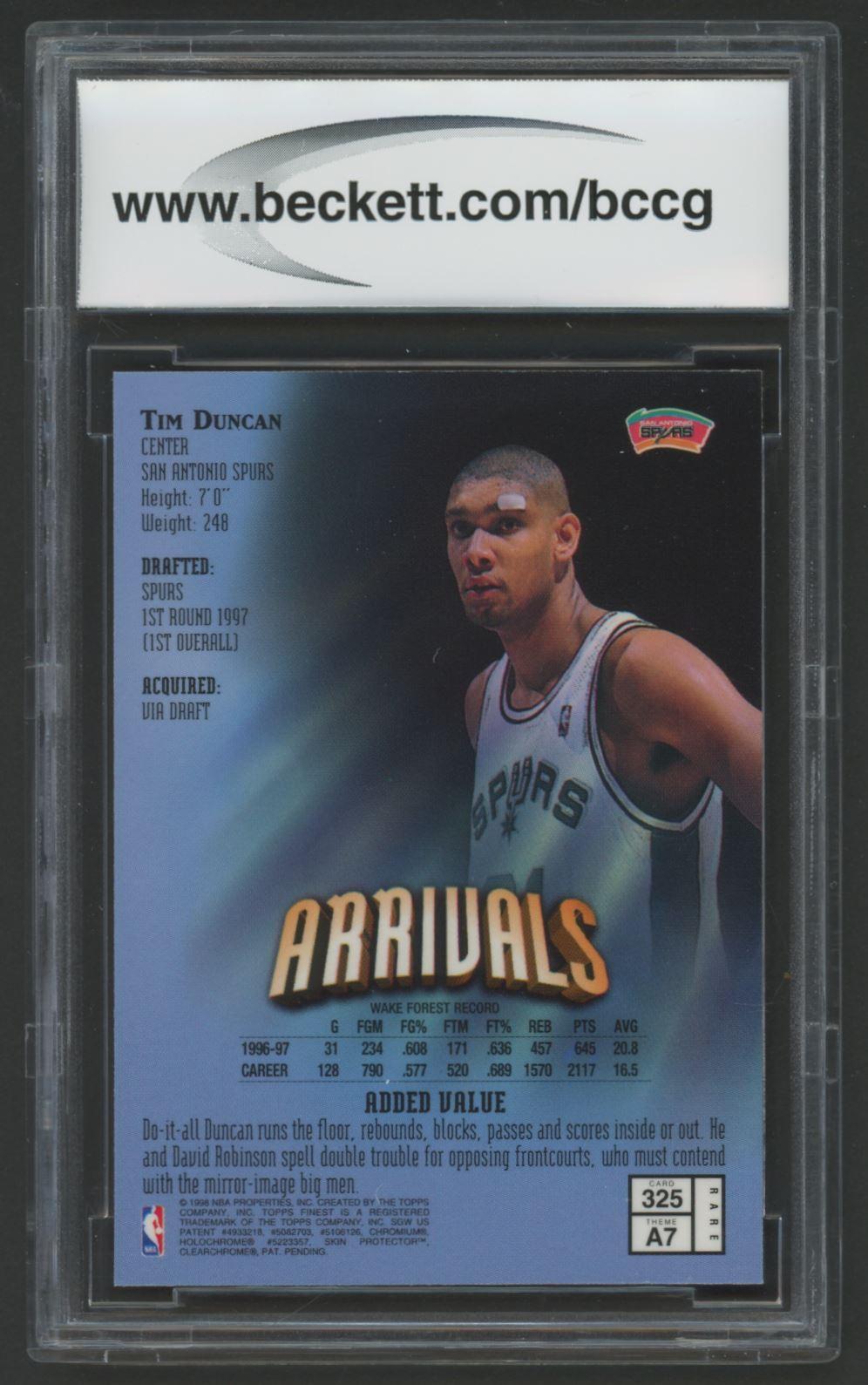 Tim Duncan 1997-98 Finest #325 (BCCG 10)