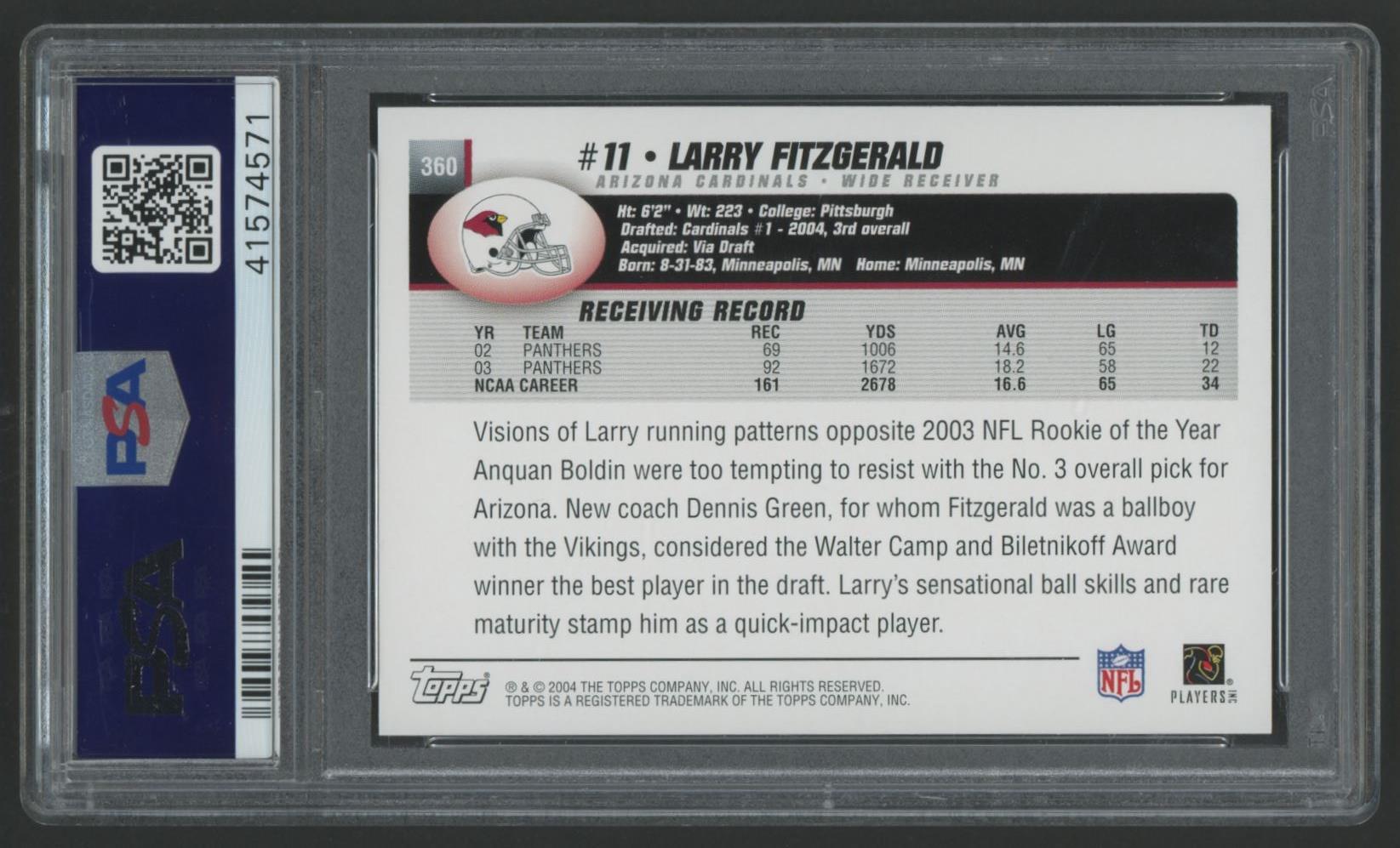 Larry Fitzgerald 2004 Topps Collection #360 RC (PSA 10)