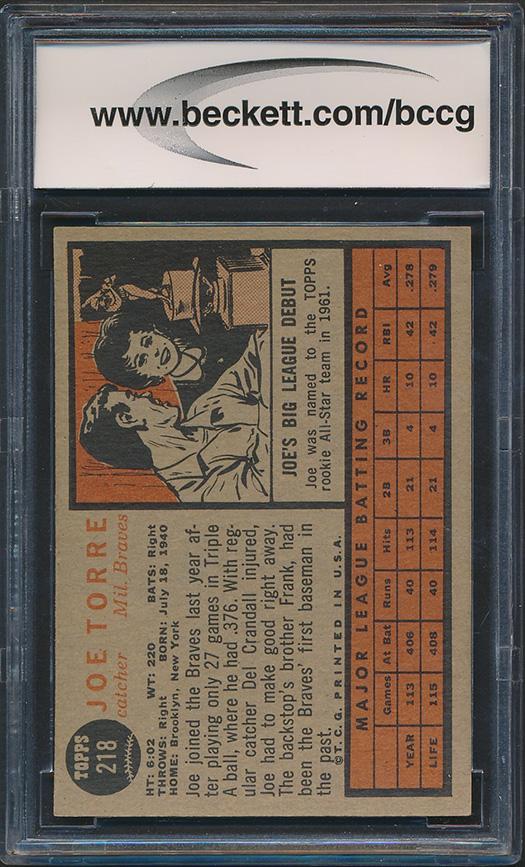 Joe Torre 1962 Topps #218 RC (BCCG 9)