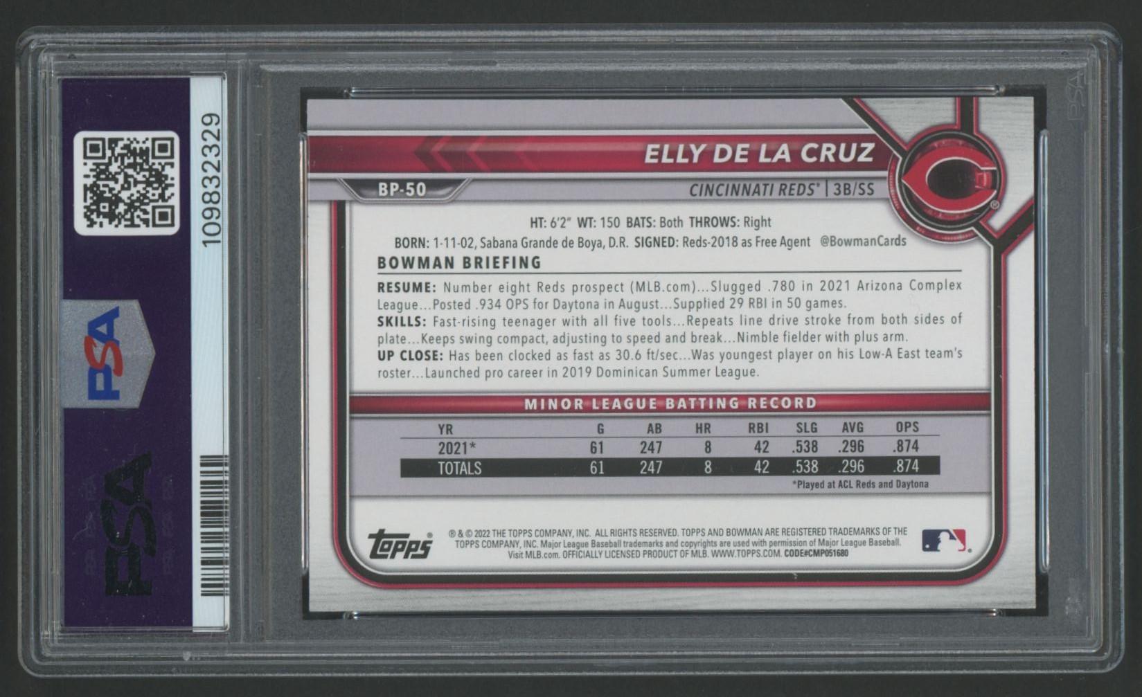 Elly De La Cruz Signed 2022 Bowman Prospects #BP50 RC (PSA 8 | Auto 10)