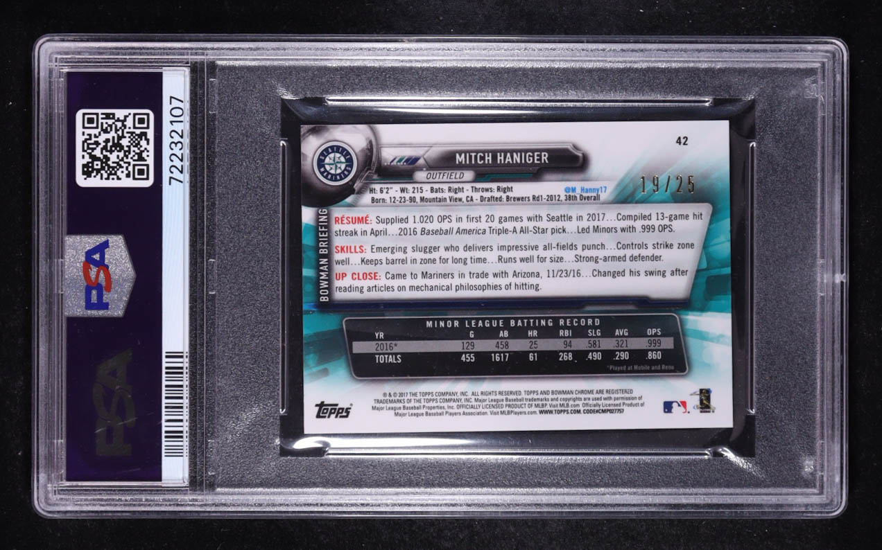 Mitch Hanger 2017 Bowman Chrome Prospects Mini Rookies Orange Refractor #42 RC #19/25 (PSA 9)
