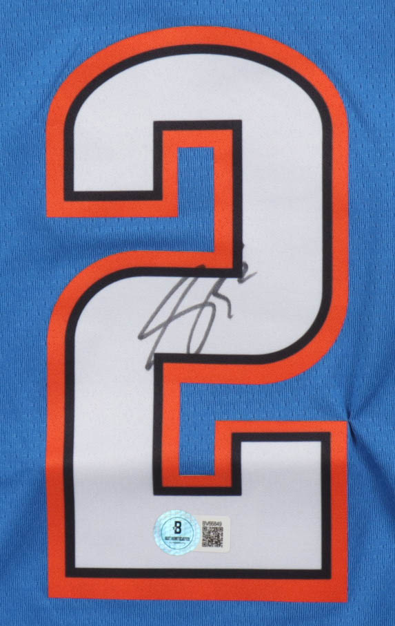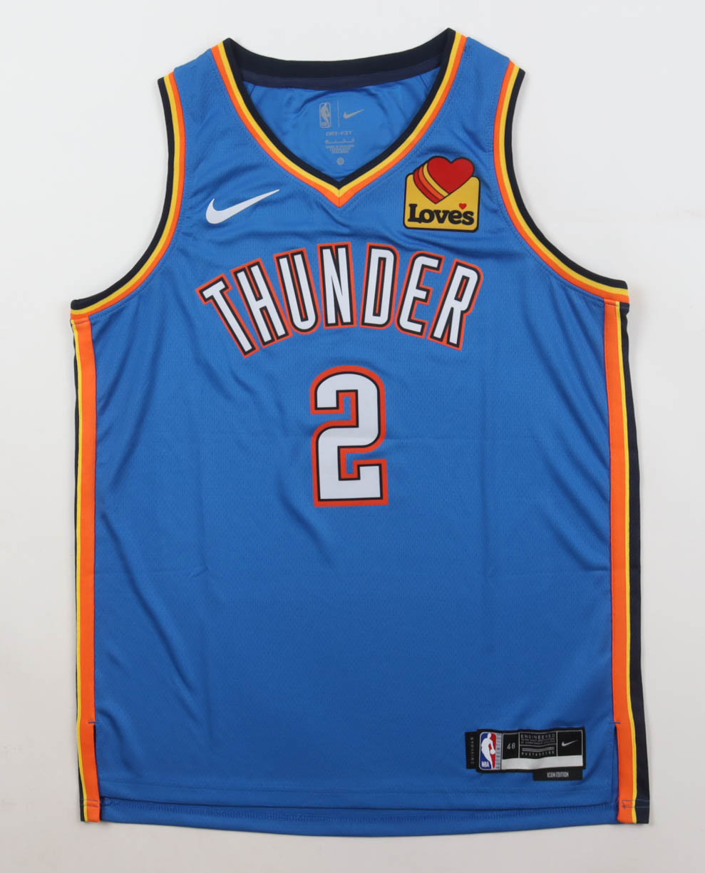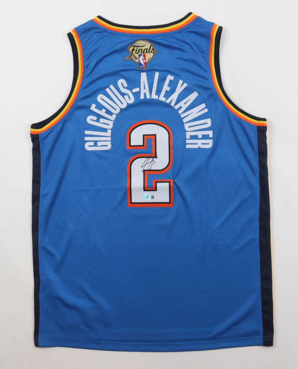 Nike authentic jersey with everything pressed on, size 48. Hand-signed by Shai Gilgeous-Alexander (Oklahoma City Thunder).