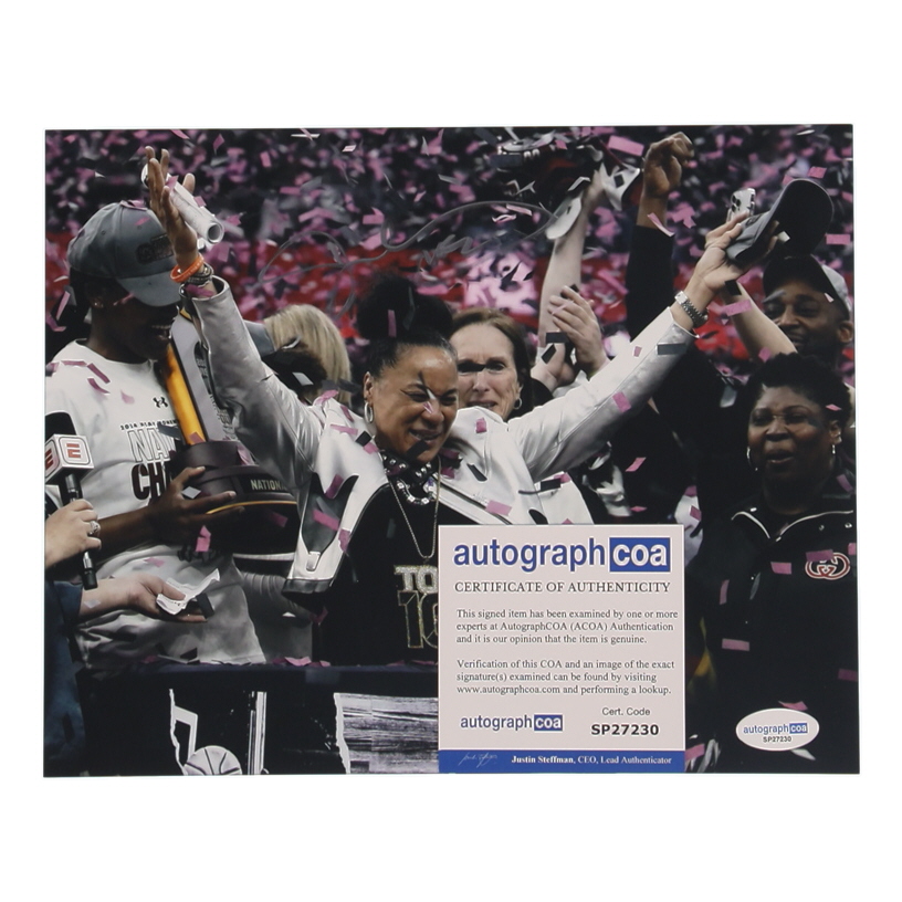 Photo measures 8" x 10" in size and has been hand-signed by Dawn Staley (HOF).