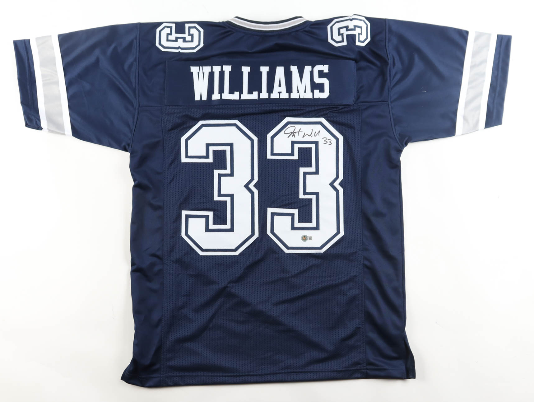 Custom jersey with everything sewn on, size XL. Hand-signed by Javonte Williams (Dallas Cowboys).
